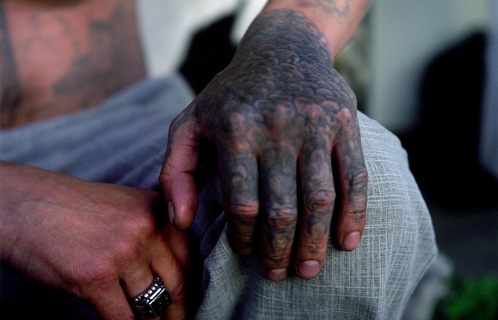 Эдуард, красноярский рецидивист и кольщик (мастер-татуировщик), 39 лет, из них больше половины провел в местах заключения. 2009 год. Фото: Максим Шер / «Медиазона»